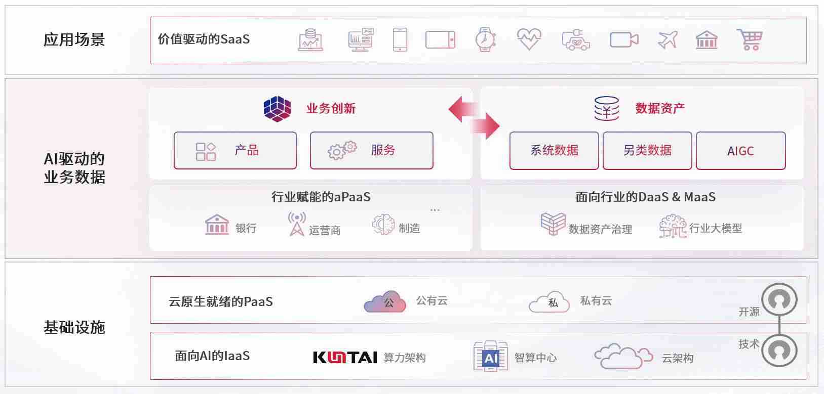 数字时代,,,围绕企业数字化转型的关键要素,,Z6尊龙时凯数码开创性的提出数云融合战略和技术体系框架,,,,着力在云原生、、数字原生、、AI原生和信创产业上架构产品和服务能力,,,为处在不同数字化转型阶段的快消零售、、、汽车、、、金融、、、、医疗、、、、政企、、、教育、、、、运营商等行业客户提供泛在的敏捷IT能力和融合的数据驱动能力,,构建跨界融合创新的数字业务场景和新业务模式,,,,助力企业级客户建立面向未来的核心能力和竞争优势,,,,全面推动社会的数字化、、、智能化转型升级。。。
